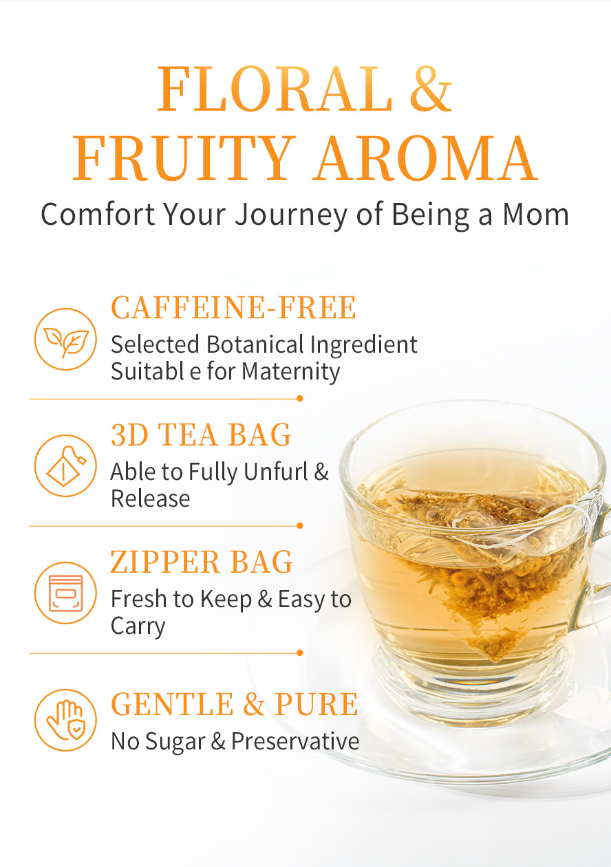 Suitable to drink during pregnancy and breastfeeding period to relax mind and body! Refreshing tea with no caffeine, enjoy your pregnancy with great comfort.
