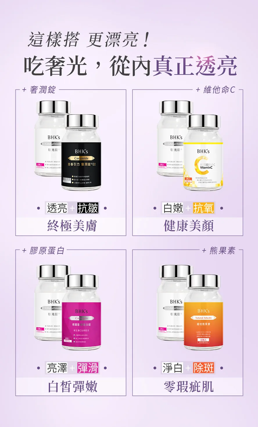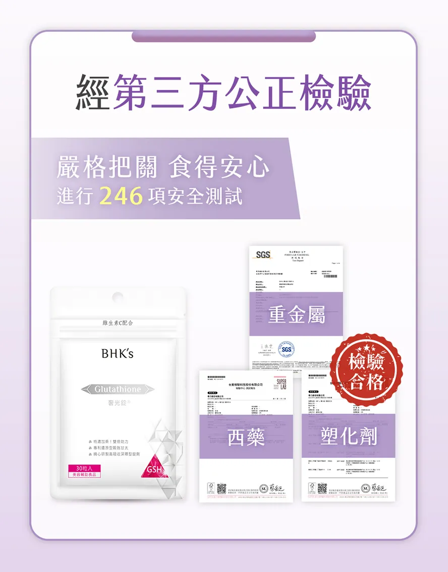 ✓ 足量:添加最高劑量250mg穀胱甘肽,滋養更有感。