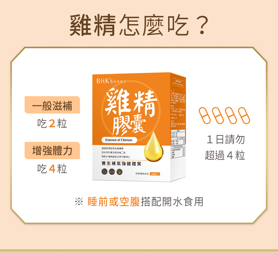 獨家技術將全雞精華完美封存,2粒膠囊效用媲美4倍滴雞精。